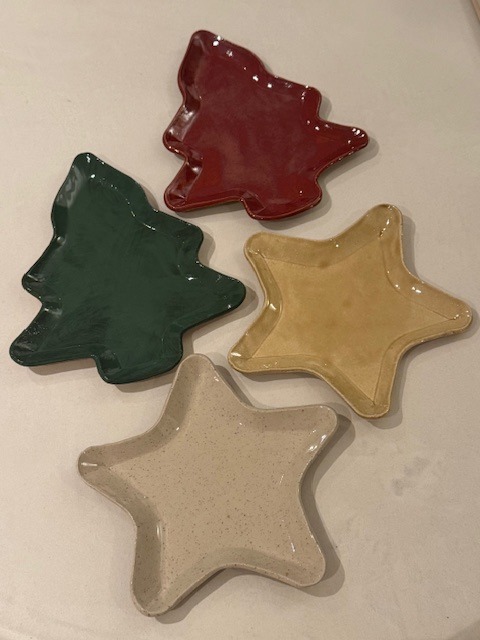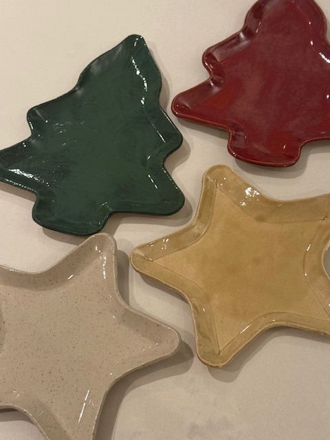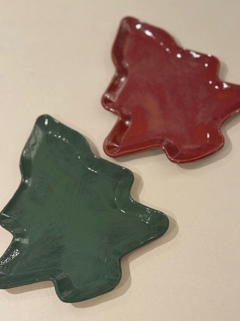 Breng instant gezelligheid aan je feesttafel met deze handgemaakte keramieken bordjes in kerstboom- en stervorm.