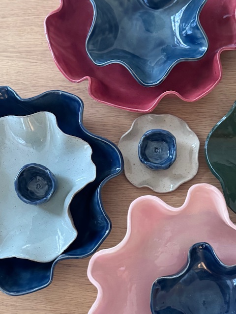 Na het vormen van de schalen kies je je favoriete glazuurkleur om je creaties de finishing touch te geven. Daarna worden je stuks traag gedroogd en een eerste keer gebakken op 950° en vervolgens geglazuurd naar jouw kleur keuze en tenslotte hoog gebakken op 1250°