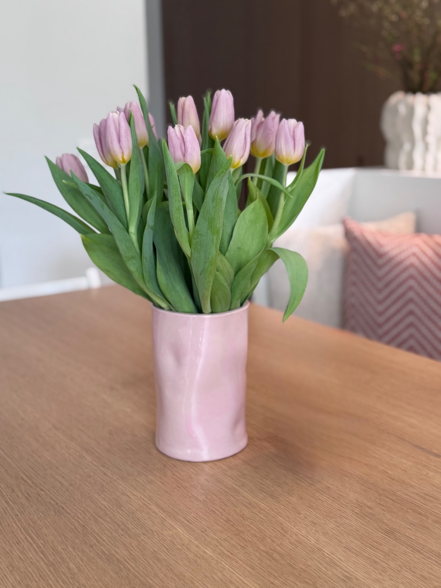 Na de workshop word je vaas traag gedroogd en een eerste keer gebakken op 950° en vervolgens geglazuurd naar jouw kleur keuze en tenslotte hoog gebakken op 1250°.