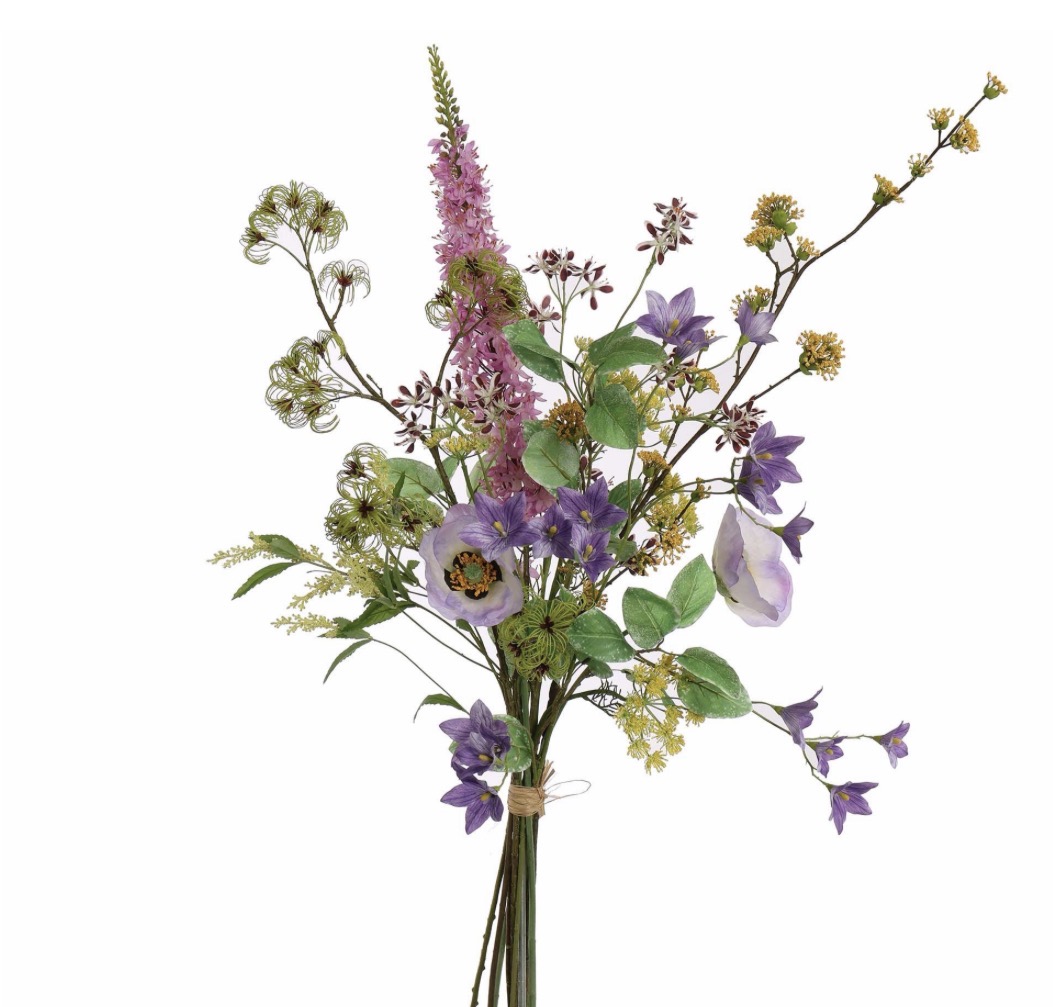 Een verfijnd zijden boeket met zachte paarstinten en luchtige takken. (120cm)Subtiel, botanisch en tijdloos.